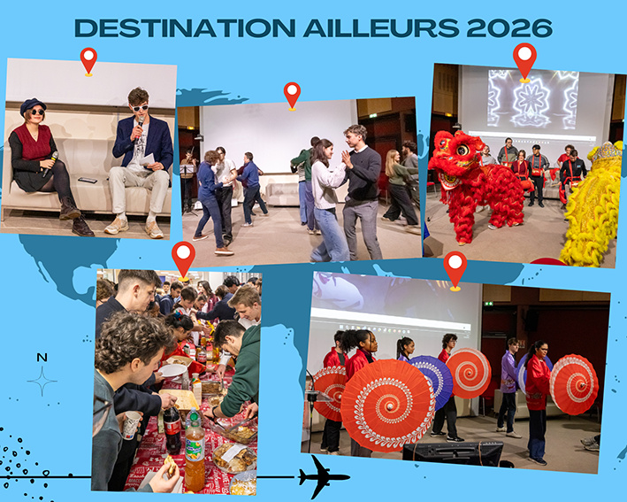 Les élèves ont participé à l’événement Destination Ailleurs, un après-midi entièrement dédié aux langues et aux cultures, célébrées sur scène. Chaque groupe de langue volontaire a préparé une contribution originale pour l’occasion. L’édition s’est ouverte en chanson allemande (Hallo Berlin !), avant de laisser place à un feu d’artifice éclectique de productions : sketchs, publicités, messages télévisés, danses, recettes de spécialités, chorégraphies, chansons ou encore quiz.